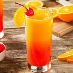 -Colocar el contenido de la coctelera en el vaso con hielo y granadina.