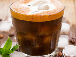 -Colocar el contenido de la coctelera en el vaso con hielo y granadina.